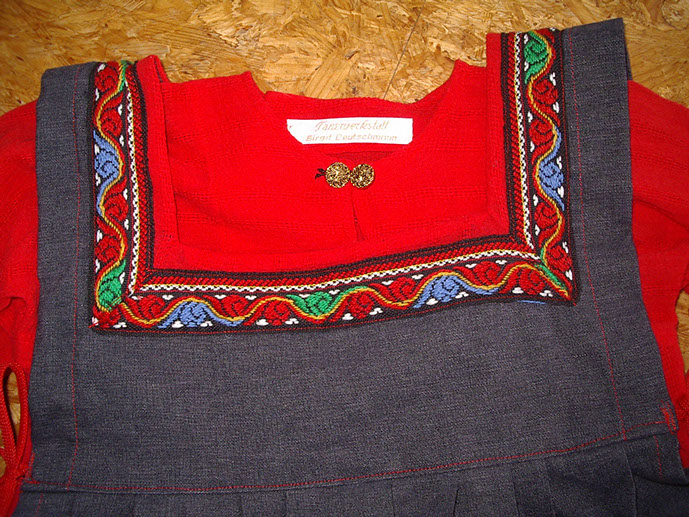 Das Überkleid ist aus 2 Farben, ebenfalls dekorative Handnähte