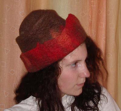 Handgefilzter Hut aus weicher Merinowolle mit grafischen Filzornamenten, die nach Belieben anders gestaltet werden können